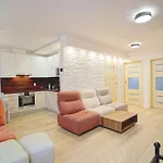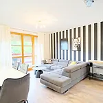 L'appartement offre une vue sur les montagnes et comprend un balcon et un coin salon équipé le lave-linge. Apartamenty Everysky - Komuny Paryskiej est également meublé d'un canapé-lit. La chambre de la propriété est équipée des canapés-lits. L'appartement dispose d'une salle de bains avec draps de bain.